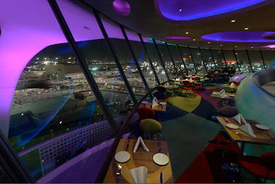 The building resembles a flying saucer, which is spot on Jetsons. Disney helped design the structure, and was involved in the remodeling in 1997. Originally the 360 degree restaurant turned slowly, but is now, sadly, stationary.